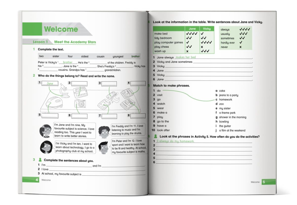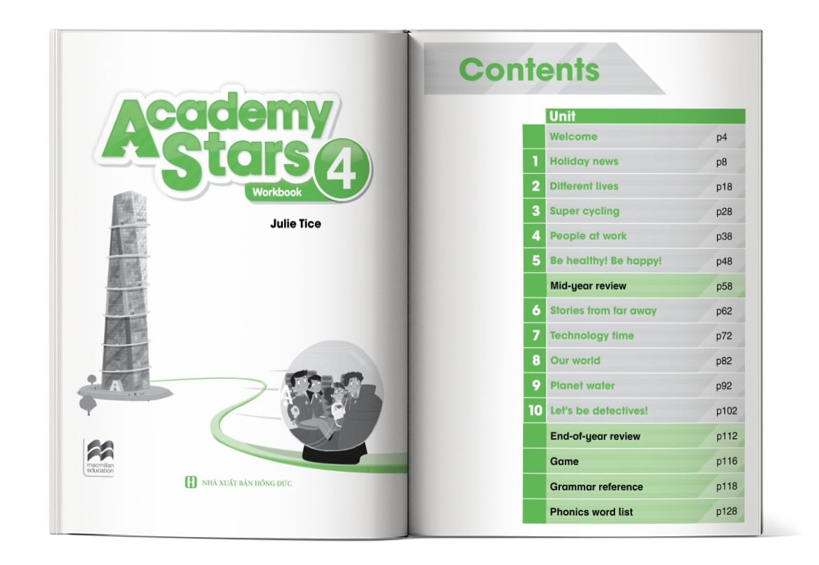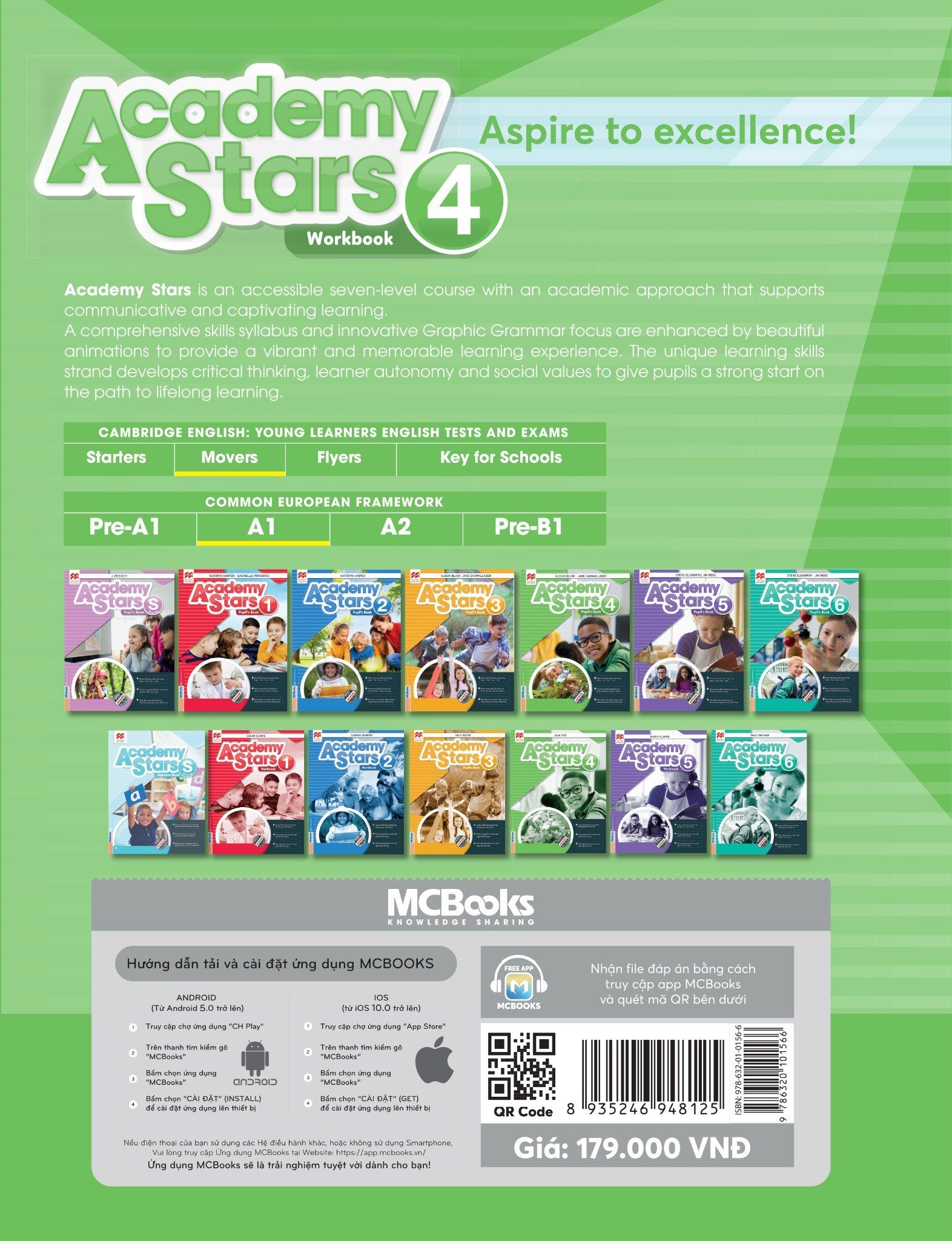 Academy Stars 4 Workbook là một phần trong bộ giáo trình tiếng Anh gồm 7 cấp độ nổi tiếng Academy Stars, được biên soạn bởi nhà xuất bản Macmillan hàng đầu thế giới. Bộ sách được phát hành tại Việt Nam bởi Công ty Cổ phần Sách MCBooks.