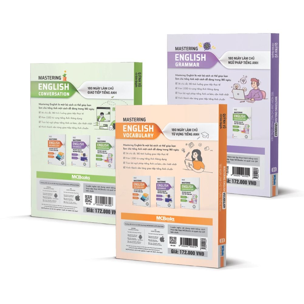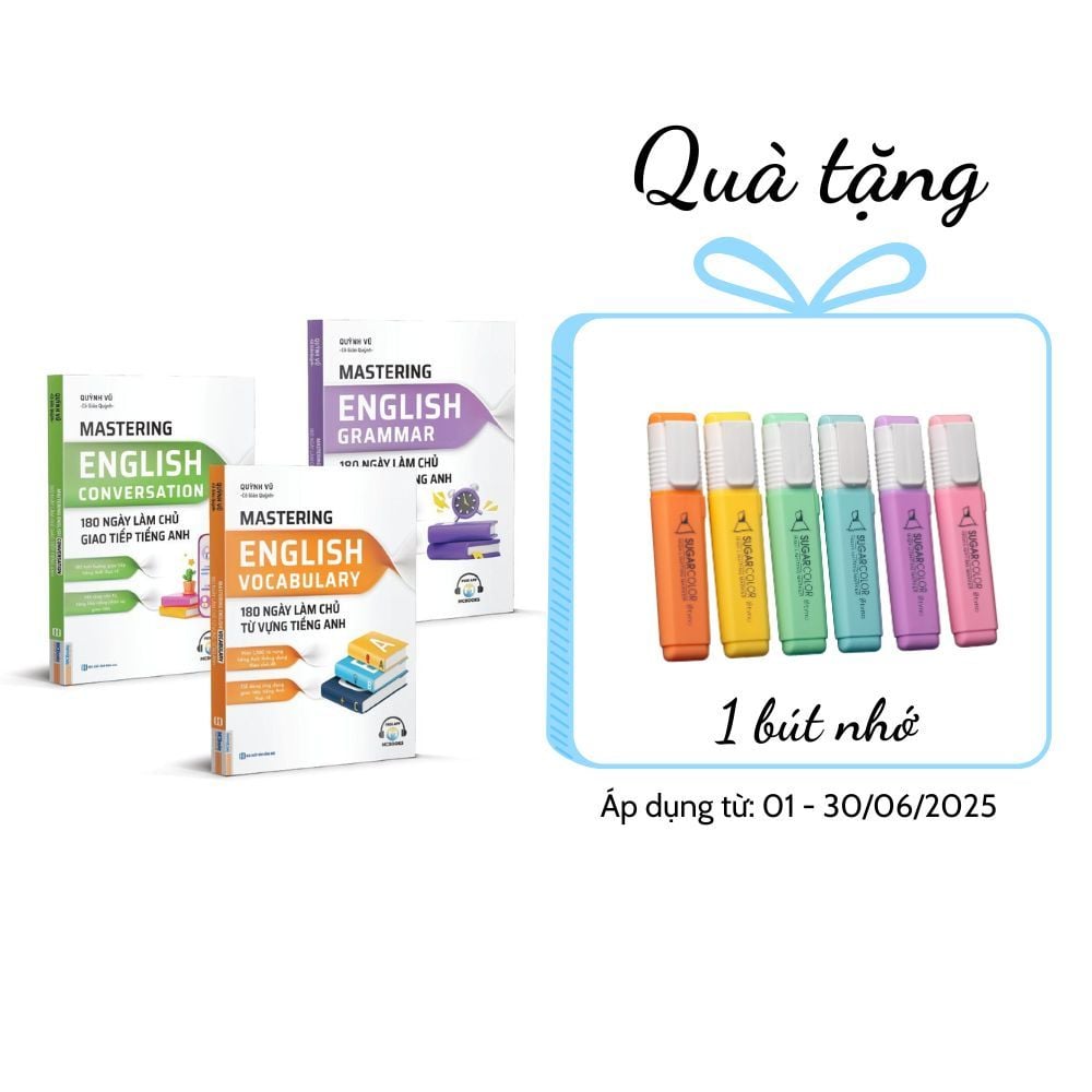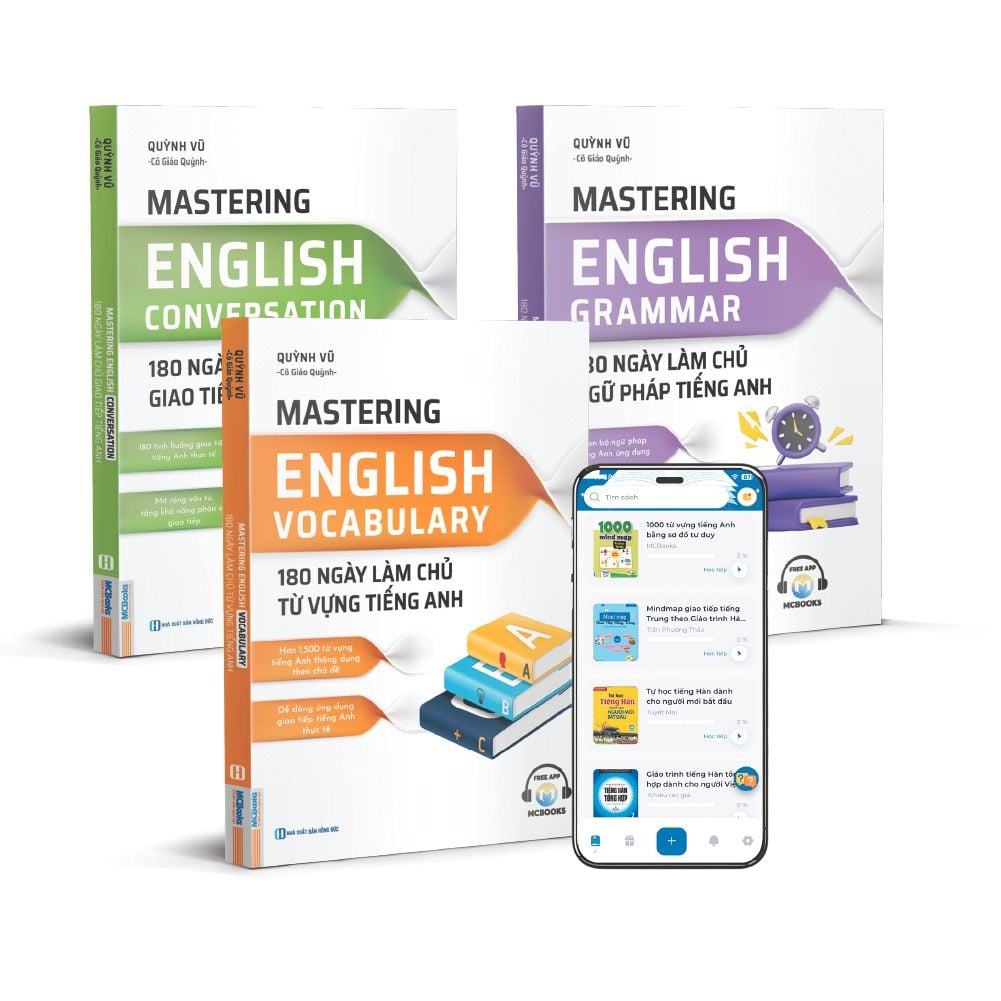 Combo Mastering English - 180 ngày làm chủ tiếng Anh gồm 3 cuốn chính: Từ vựng, Ngữ pháp, và Hội thoại giao tiếp, được xây dựng theo lộ trình học thông minh và logic trong 180 ngày, giúp người học dễ dàng tiếp thu kiến thức từ cơ bản đến nâng cao. Điều đặc biệt là nội dung của ba cuốn sách này có sự liên kết chặt chẽ với nhau, tạo nên một phương pháp học tập toàn diện, hỗ trợ bạn không chỉ ghi nhớ mà còn biết cách áp dụng vào thực tế.