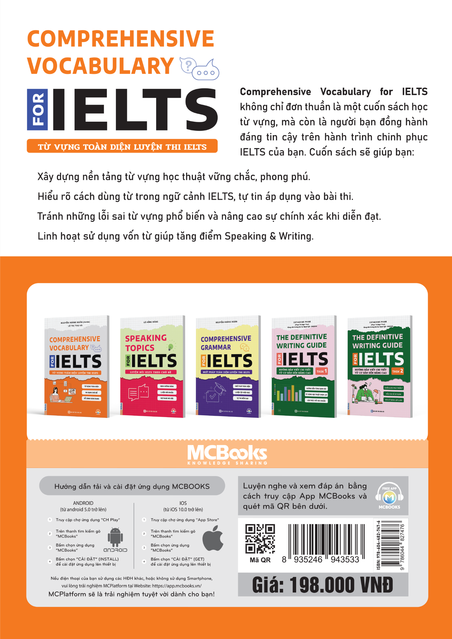 "Comprehensive Vocabulary For IELTS" là người bạn đồng hành không thể thiếu trên hành trình chinh phục IELTS. Hãy để cuốn sách này trở thành vũ khí mạnh mẽ, giúp bạn bứt phá band điểm, biến từ vựng không còn là gánh nặng mà trở thành lợi thế cạnh tranh vượt trội trong kỳ thi quan trọng này.